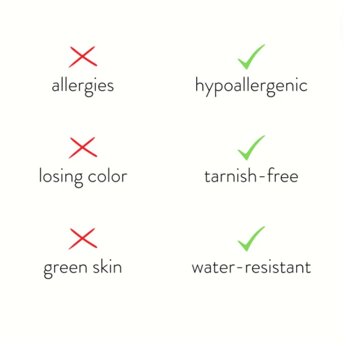 Composición: Acero Inoxidable Premium con Baño de Oro de 18k. Resistente al Agua, Sudor y Calor (Sin decoloración, Sin pérdida de brillo). Hipoalergénico y respetuoso con la piel.